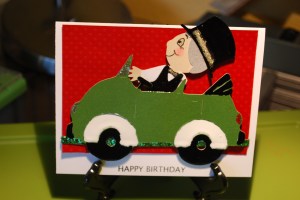 Project 6:  My girls and I made this for my father-in-law’s birthday that was in early December.  He loves old cars, so we had fun doing some new tricks using Peachy Keen faces and Everyday Paper Dolls Cricut Cartridge.