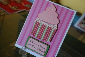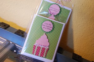 Project 4:  I made these pack of cards for all the ladies in our family.  I ended up making 3 in each set which came to 21 cards!  I did this kind of last minute. I used My Pink Stamper’s Sweetest Cupcake Stampset I won from a Blog Hop Challenge back in August.  I also used Once Upon A Princess Cartridge for the cupcake. All the ladies LOVED them!