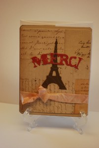 For the scaredy cat, using Paper Doll Dress Up page 49. Using Cricut Craft Room, I hid her face, cut her at roughly 4 inches and then distressed her with some white stamp ink. I used Peachy Keen’s Everyday Character with white stamping ink from Close to My Heart. I used green Stickles for her eyes and black Glossy Accents for her nose. I tied a 1/8 inch ribbon around her neck.