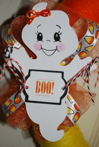 I finished the wreath by adding a 2 inch orange and black bow for the wreath to hang from.