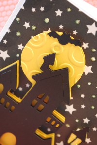 For the moon, I used Mini Monograms circle cut at 4.25 inches. I embossed with Cuttlebugs Spots and Dots and dusted with Ranger Perfect Pearls Biscotti to add shimmer.