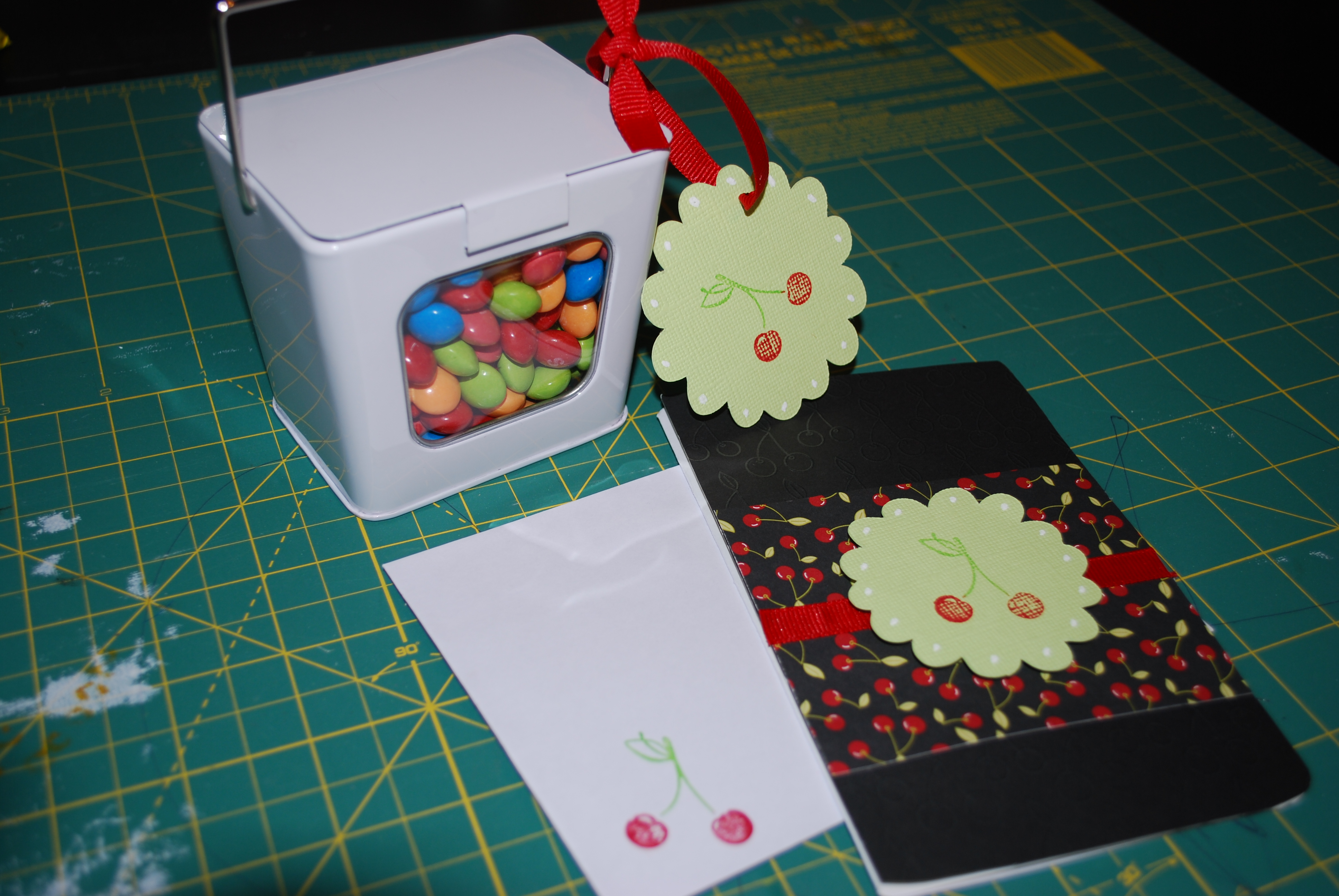 I had to make a slew of cards the other night and I came up with an easy yet cute card that went super quick. I may add this to my Christmas gift packs. I got the original idea from My Pink Stamper in one of her tutorial videos making a cherry card and I have run with it since. Thank you MPS! If you have not had a chance to check out her videos, they are worth pouring yourself a cup of joe, adding a little “rat poison” (that is what I call my favorite creamers I tell my hubby that I am just taking off the bad years while I pour that into my cup of joe) and sit a spell and enjoy getting some neat ideas and tips.