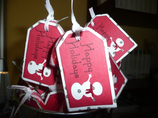 I am in deep with Christmas project mode and I got a call from a friend that needed some help for making some last-minute thank you tags for a party she is throwing this week. It is going to be a very special and elegant party so I did a few samples for her and this is what we came up with. Thankfully they are done and in the safety of her hands and I am back onto Christmas crafty crazy!